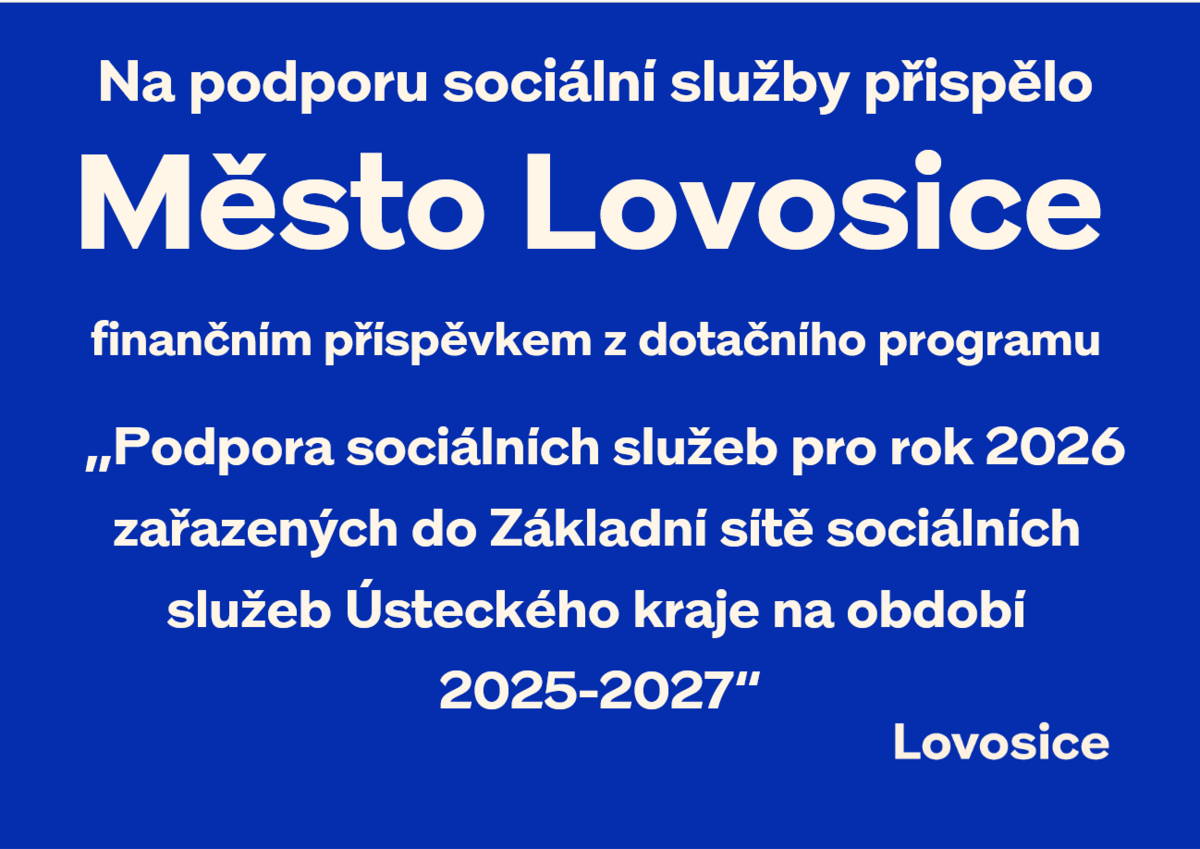 I v roce 2026 byla naše organizace napříč všemi poskytovanými službami podpořena městem Lovosice a to hned z několika dotačních titulů.